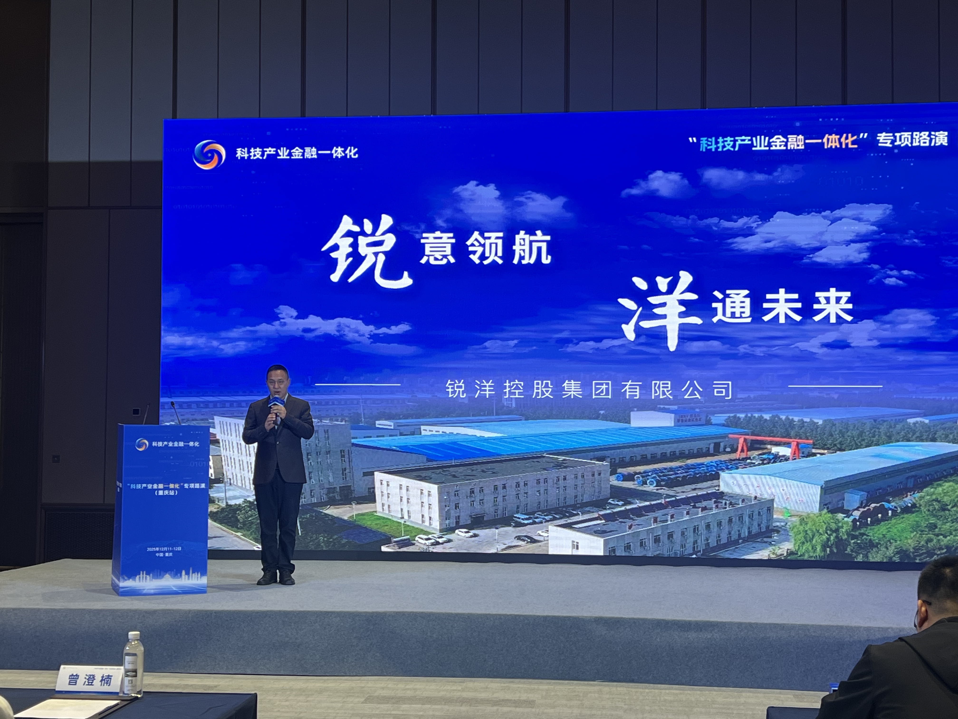 12月12日,“科技产业金融一体化”专项路演(重庆站)于重庆科学会堂举行。锐洋控股集团有限公司董事韩素淼代表集团出席并发表主题演讲,董事会秘书郎旬旬陪同参加。 本次活动由重庆市经济和信息化委员会、中